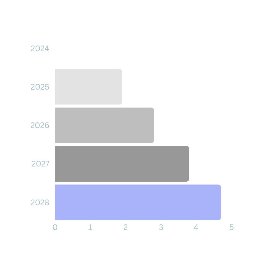 Para 2024, nuestro objetivo es alcanzar ventas de 1.1M USD y en el 2028 llegar a los USD 4.7 MM.